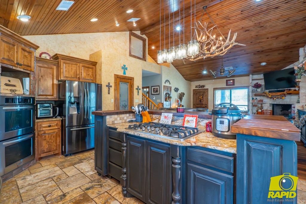 Welcome to your own personal paradise situated on just under 3 acres in Wall ISD.  This 3/3 combines country living with high end amenities.  The main residence boasts master suites on each floor, the upstairs has an incredible view of Susan Peak and the beautiful inground  pool.  The downstairs master has an office built into the closet with an oversized closet. The living room features a propane fueled fire place that will burn wood or support a log set.  The gourmet kitchen is an entertainers or cooks dream.  The kitchen opens to the sprawling back yard quipped with an outdoor fireplace, covered patio, and sparkling  pool.  There is one 3000 sq ft shop and an additional barn with approx. 900 sq ft of living quarters and 1600 sq ft of work space/storage.  Both shops have additional lean to for covered parking and are spray foam insulated.    The entire property is fenced with two automatic gates.  The sea container is negotiable.