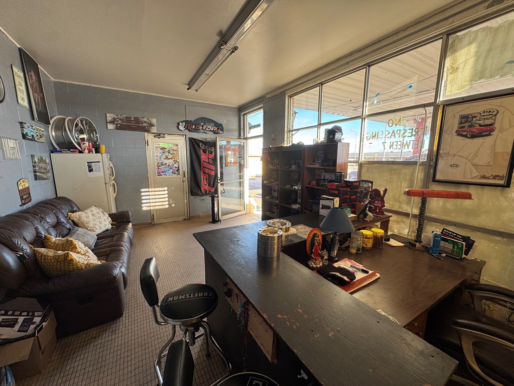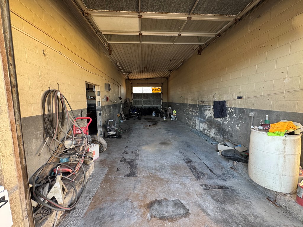 Prime commercial property sitting on three full lots with ample parking and excellent visibility on one of the main streets in town. This 1,980 sqft shop is positioned on a corner lot offering outstanding access and traffic flow. The building features three bays, including two large garage bays and a drive-through third bay with entrance and exit, plus high ceilings ideal for automotive or service use. Interior highlights include a full office, two tool rooms, and two bathrooms. A large air compressor and vehicle lift will convey, providing immediate value for a new owner. City utilities throughout, and the current owner has added a mini-split system for improved climate control. Previously operated as a detail car shop, this property is well suited for a mechanic shop, detailing business, or other commercial use. With its layout, location, and flexibility, this property offers exceptional potential for an owner-operator or investor.