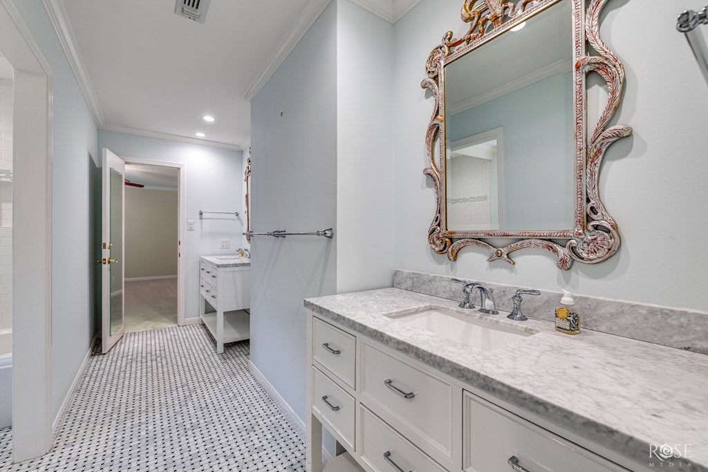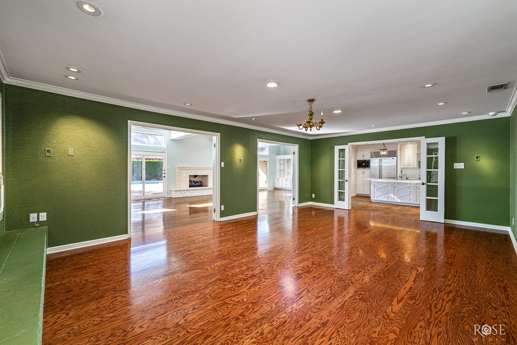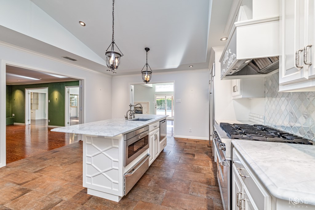 Elevated design meets effortless entertaining in this exquisite custom home on a picturesque tree lined street.  Designed with exceptional flow, the home features 6-foot-wide openings in the main livings spaces.  The extraordinary kitchen offers a Miele built-in coffee maker, 3 ovens, 2 dishwashers, 2 full sinks, gas cooktop, warming drawer, under counter microwave, walk-in pantry and a stunning island.  The sunroom offers a gas fireplace, wet bar, and floor to ceiling bookshelves-perfect for relaxing or entertaining.  Additionally the home offers a private home office, 2 powder rooms, art lighting, and abundant storage throughout.  Step outside to the resort-style backyard featuring a fabulous pool, outdoor fireplace and a cabana with a kitchenette and private bath. A 2 car garage plus a 2 car carport with storage closets completes this beautifully landscaped property.  Schedule your showing of this exceptional offering of timeless luxury today.