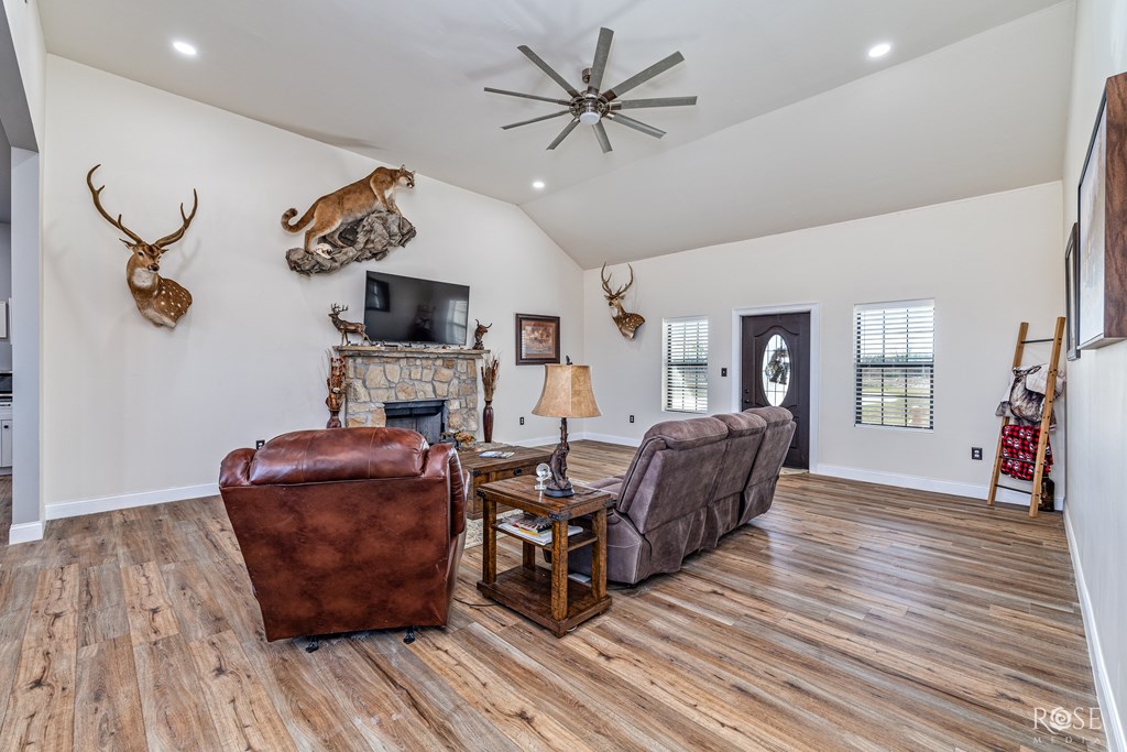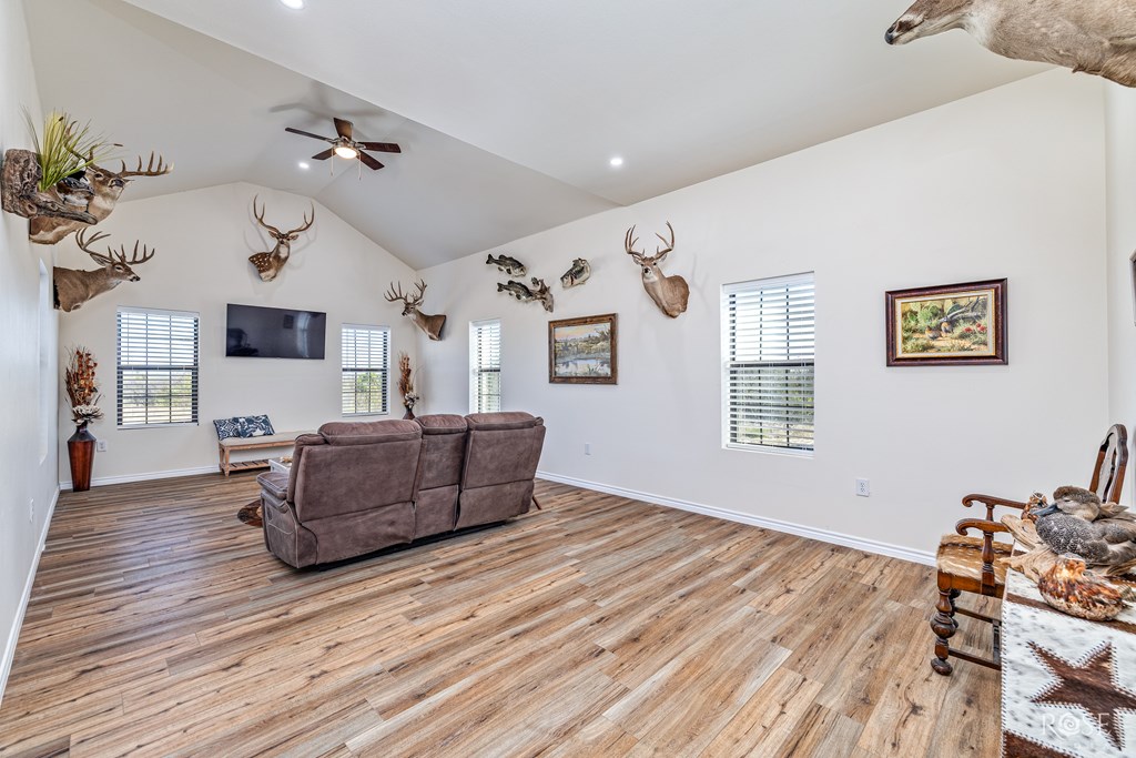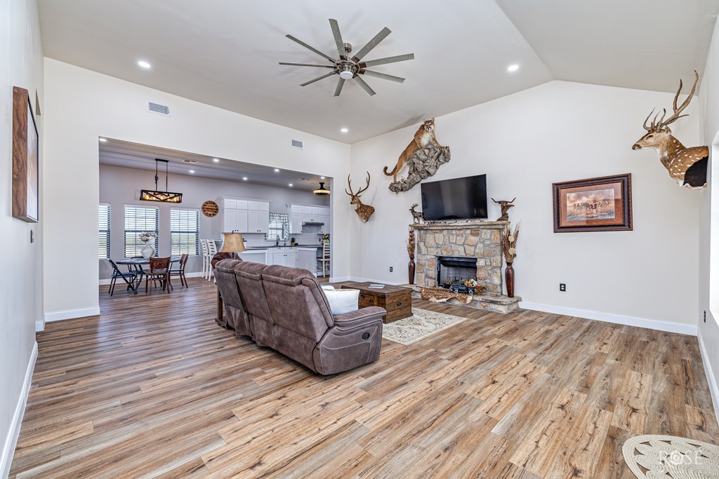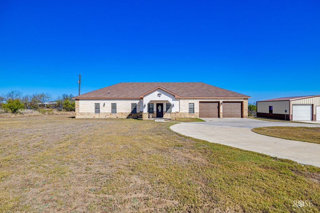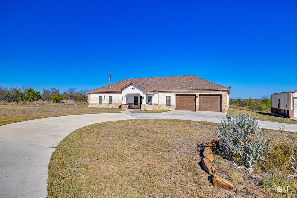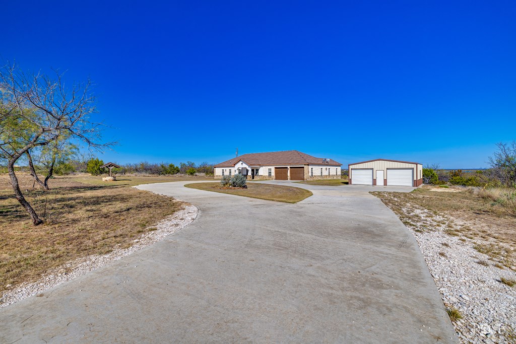 A truly rare find with breathtaking lake views! This gorgeous home offers 5 acres of privacy with unbeatable access to Lake Ivie, located just 3 miles from the marina and world-class bass fishing. Inside, you'll find luxury granite countertops, upscale laminate flooring throughout, a beautiful stone fireplace, and abundant natural light. The chef's kitchen is a dream, featuring two pantries, generous counter space, a bar, a center island, and stunning views of Lake Ivie. Perfectly designed for entertaining, the kitchen sits between two living areas and a dining room, creating an ideal open and inviting layout. This home offers 3 spacious bedrooms and 2 bathrooms. Step outside and relax on the back patio as you take in peaceful lake views and surrounding wildlife. Additionally, the property includes a 28x30 barn with electricity, 2 roll-up doors and extra storage space. This home is the perfect blend of comfort, lake living, and outdoor lifestyle ready for you to enjoy!